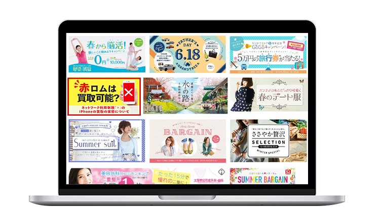 赤ロムという言葉を知らない人にも携帯のことだと伝わるように写真を挿入し思わずクリックしてもらうためにパッと見たときにすぐ伝わるデザインにしました。
