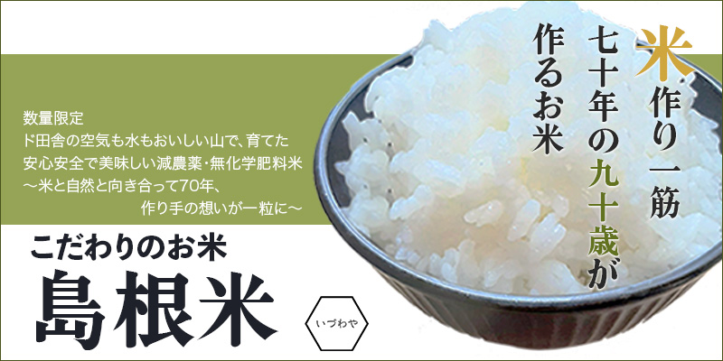 - ポイントは 島根米,減農薬米,科学肥料不使用,数量限定販売 ,ド田舎でめったに車が来ない山での栽培 空気と水が奇麗な場所