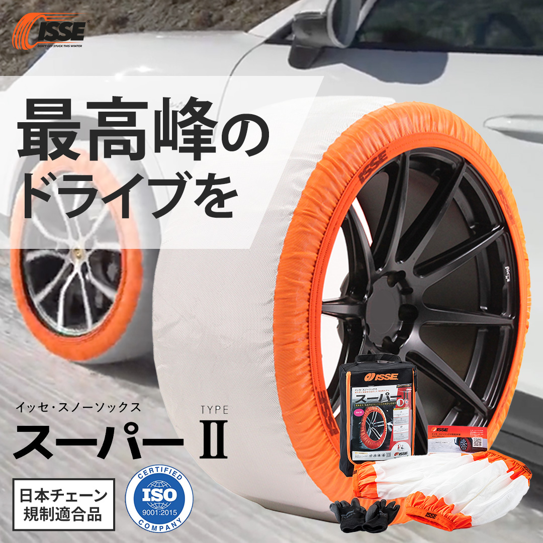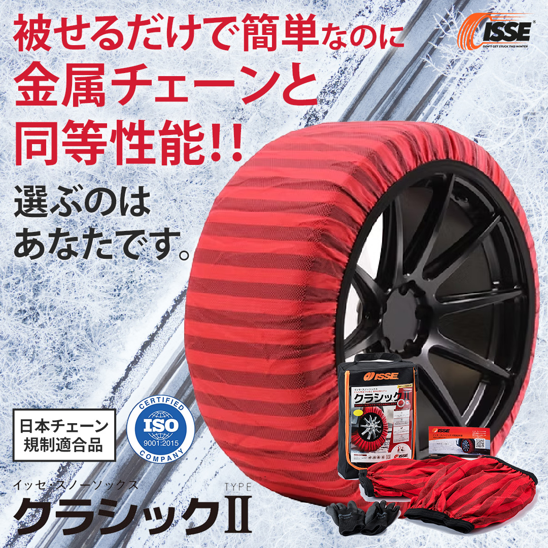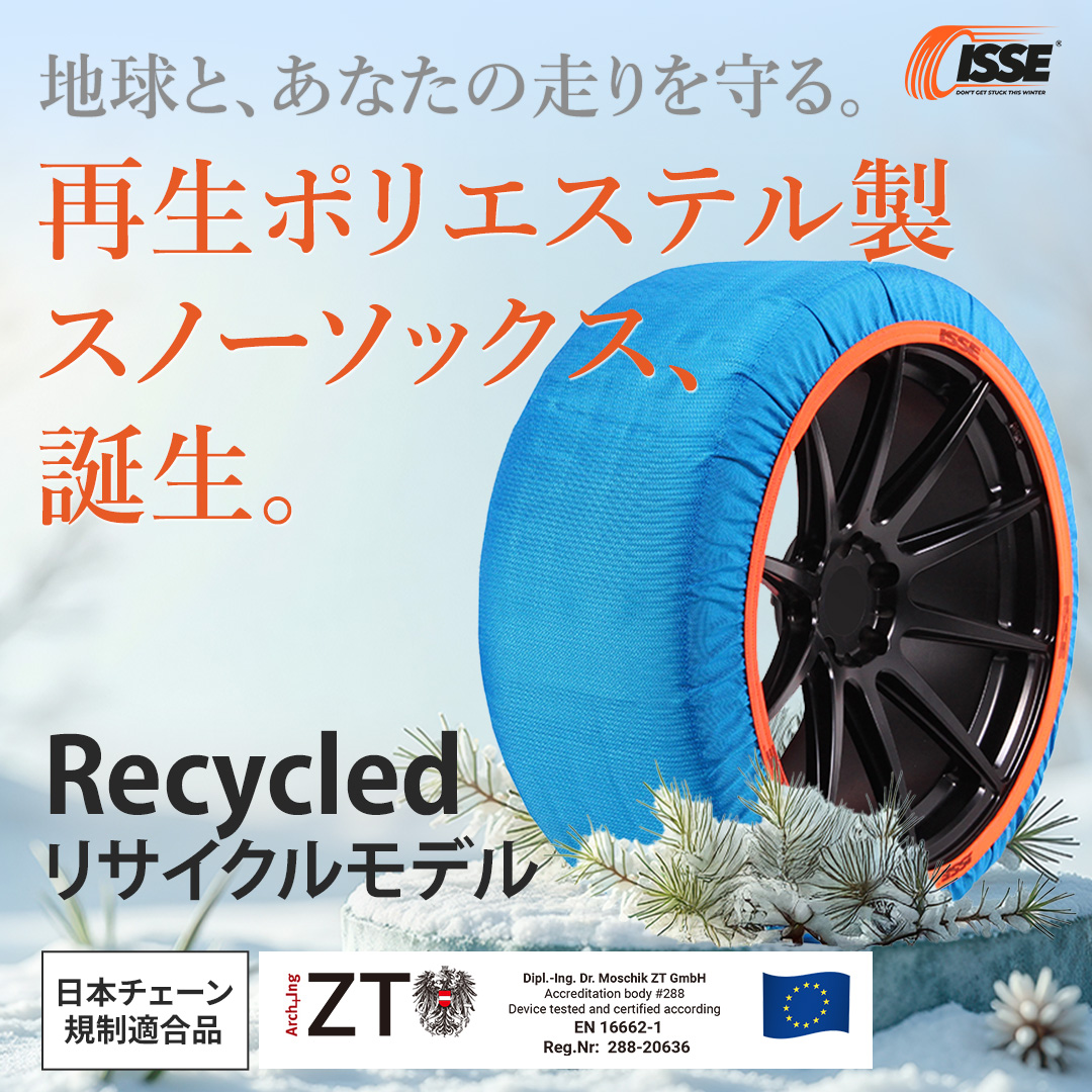 背景に実際に装着して、雪道を走っている車の写真を配置