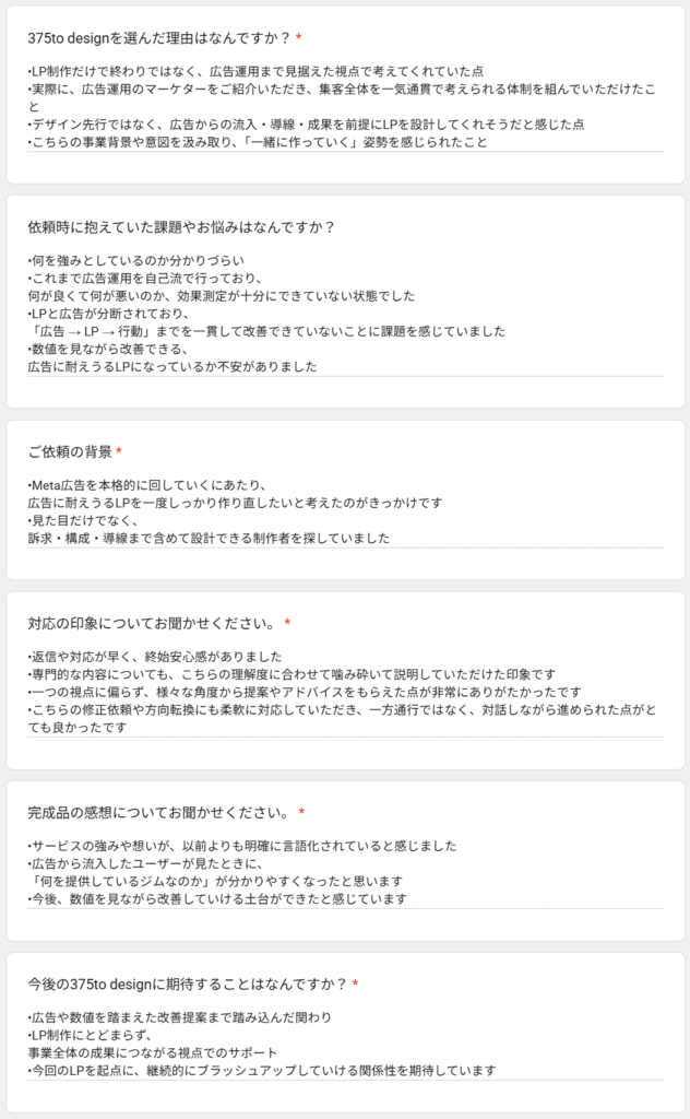 LP制作にとどまらず、事業全体の成果に繋がる視点でのサポートを今後も期待しております。