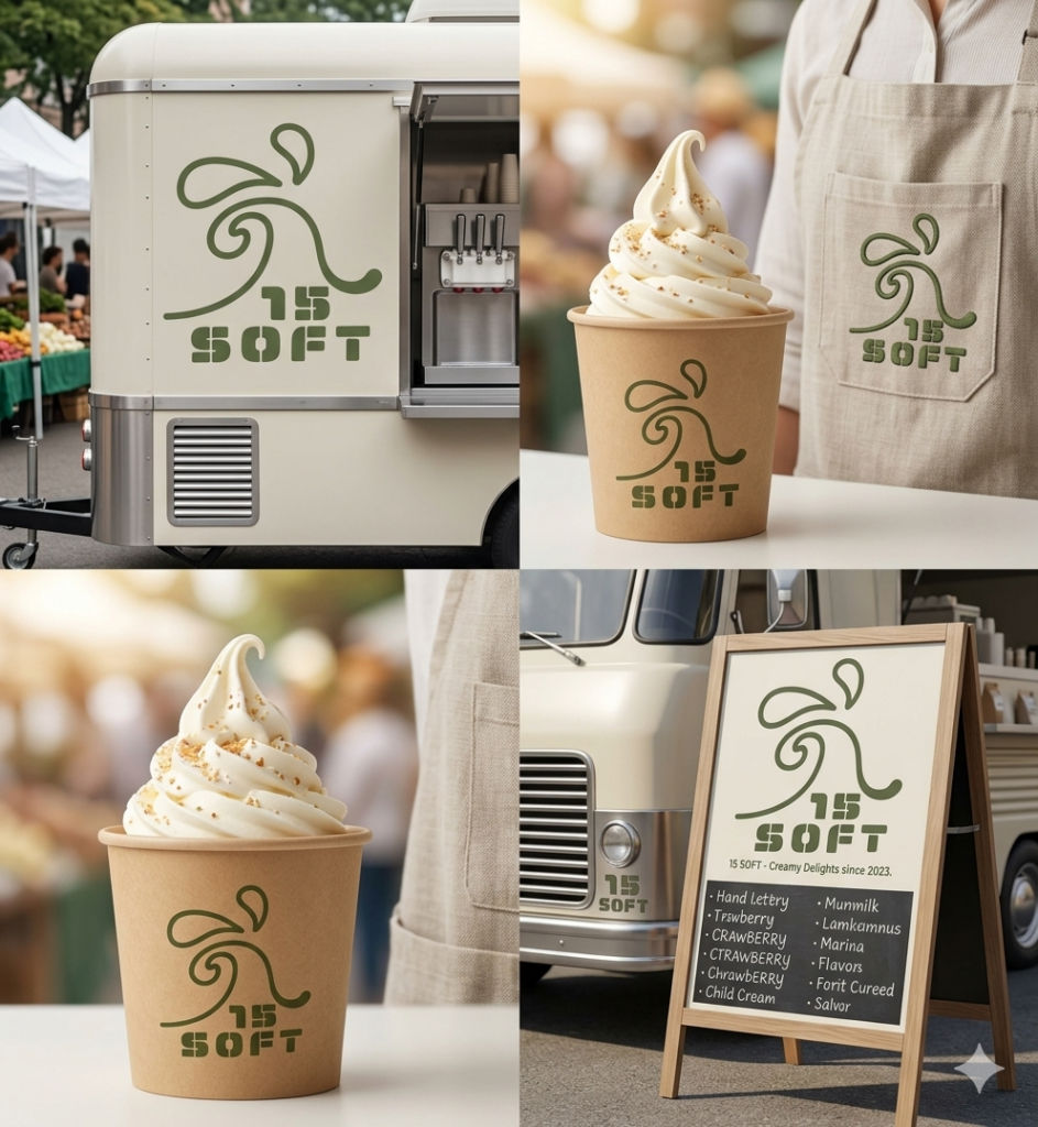 • キッチンカーのソフトクリーム屋さんを1年後のオープンを目指してスタートしたところで、自分の手描きとGeminiとの合作で大まかロゴデザインは出来上がっているのですが、そちらをバランスを整えたり、ブラッシュアップしてちゃんとしたロゴに完成してほしい